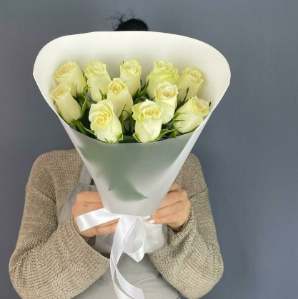 Купить букет из 11 белых кенийских роз в Риге