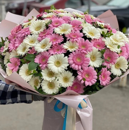 Букет из 101 белой и розовой герберой | Купить в Риге